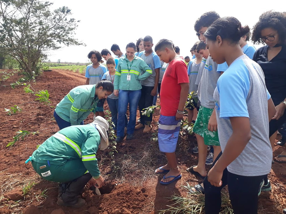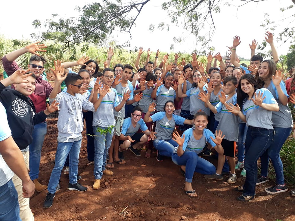 Evento realizado com os adolescentes do período da manhã na usina pitangueiras. Os alunos foram recepcionados com um café da manhã especial, passearam de ônibus para conhecer a usina e plantaram mudas de arvores em um área de reserva florestal fechando o dia com um almoço.
