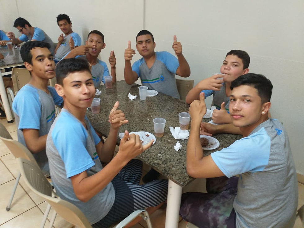 Os aniversariantes do mês de Agosto foram lembrados em um dia de festa com direito a bolo, refrigerante, lanche e um lindo porta retrato feito exclusivamente para cada adolescente.