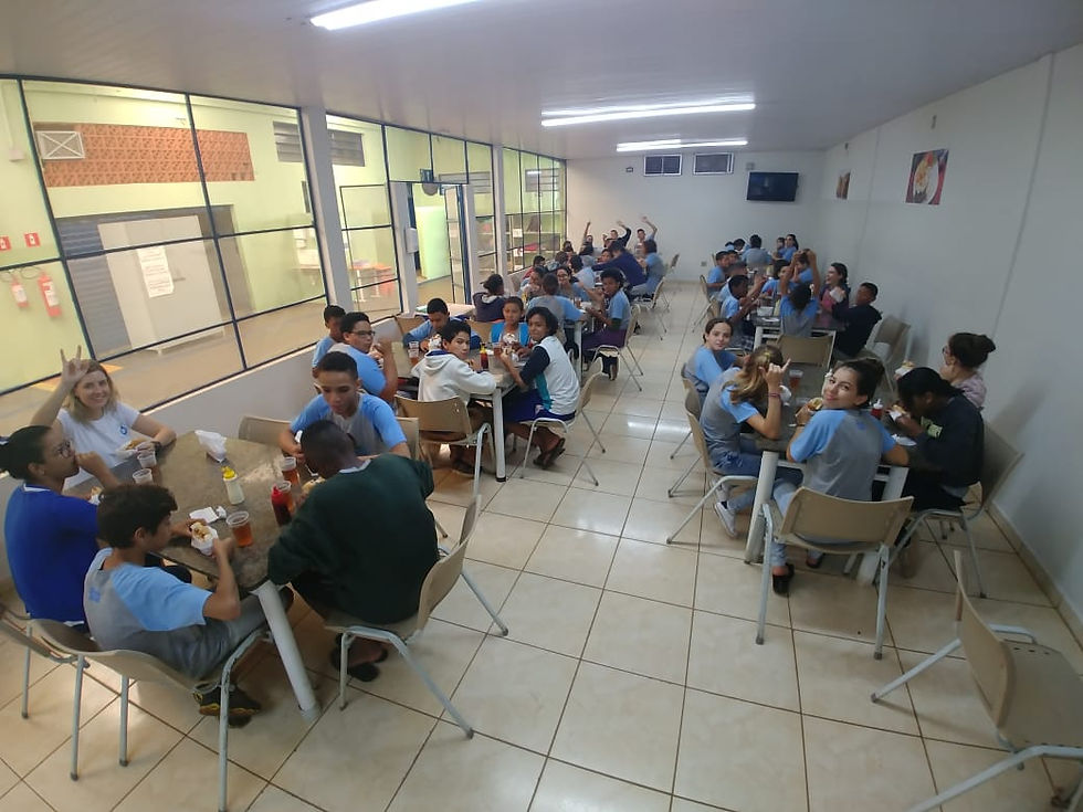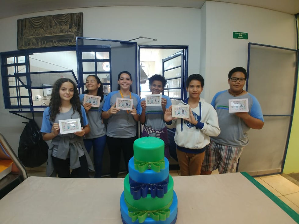 Os aniversariantes do mês de Maio foram lembrados em um dia de festa com direito a bolo, refrigerante, lanche e um lindo porta retrato feito exclusivamente para cada adolescente.